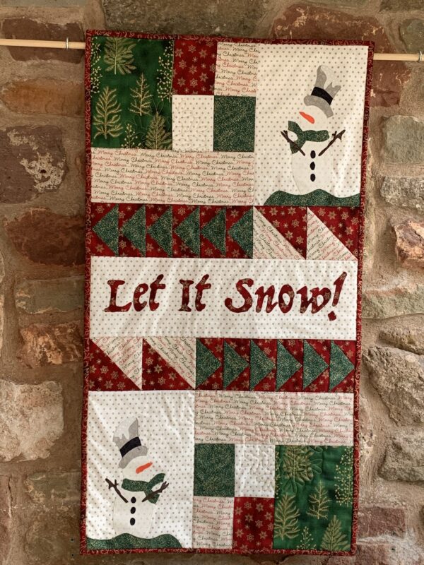 This fun day workshop will certainly get you in the festive spirit!  Simple patchwork combined with a cute Snowman appliqué design will brighten up your Christmas for years to come.  My sample has been made as a slimline wallhanging, however, the pattern is available as a smaller version and can also be made as a festive cushion.