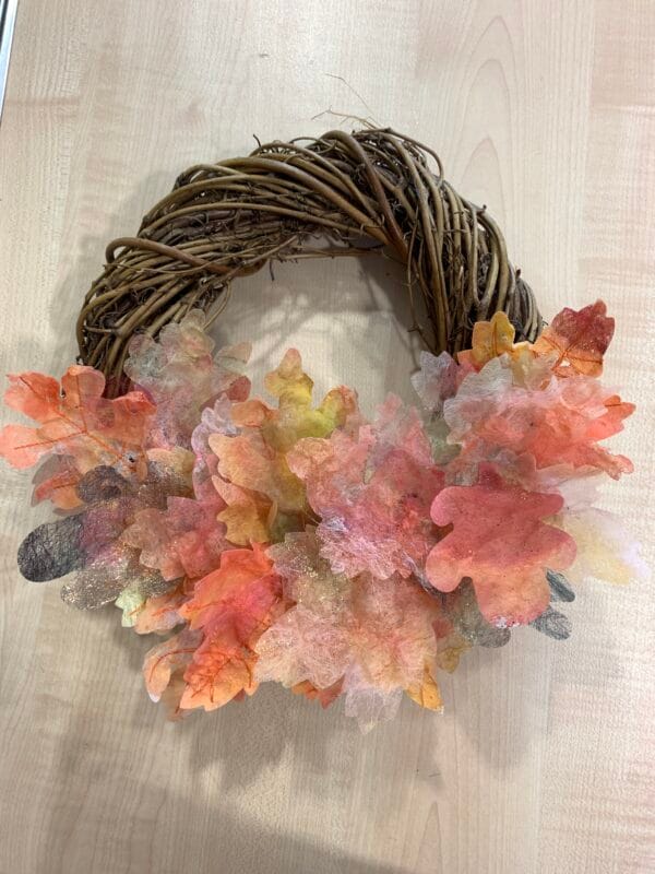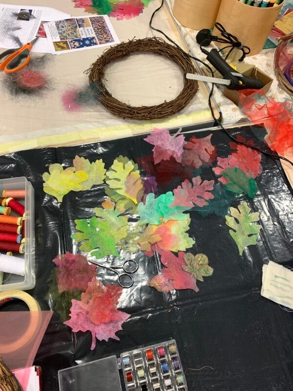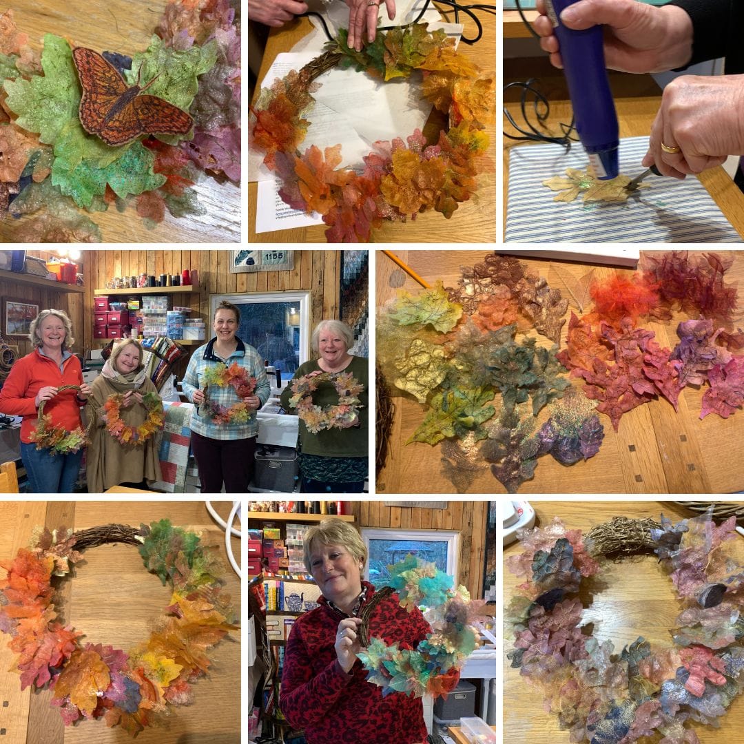 Come along and made your own ever-lasting textile wreath.  Using a wide range of materials and techniques, you will be able to enjoy fabric leaves in your home all year round.  This workshop will include: